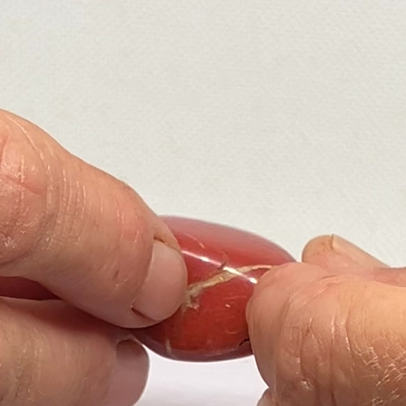 Brecciated jasper is typically red in color with spots or bands of white, yellow, brown, gray or red.